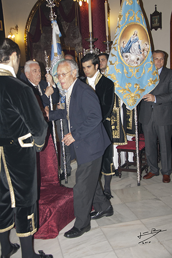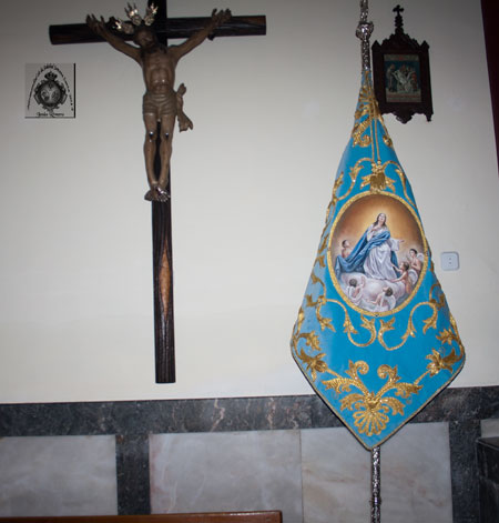 Durante la celebración fue bendecida una nueva Bandera Concepcionista que ha sido bordada en el taller de la Hermandad. |