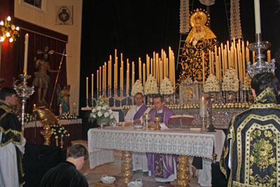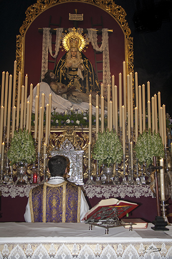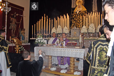 El Sábado 5 de Abril comenzó el Solemne Septenario que su Hermandad dedica a Ntra. Sra. de la Soledad Coronada, estando la predicación a cargo del Rvdo. Padre D. Antonio Santos Moreno, Párroco de Sta. María de la Estrella y Director Espiritual de la Hermandad. Los salmos han sido cantados por el coro Voces Marianas.