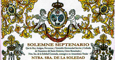 Cumpliendo con sus Estatutos, la Muy Antigua, Fervorosa y Venerable Hermandad Servita y Cofradía de Nazarenos del Santo Entierro, Cristo Resucitado y Ntra. Sra. de la Soledad Coronada, celebra del 12 al 18 de marzo Solemne Septenario en honor de su amantísima titular