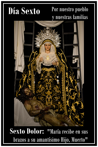 Sexto Dolor: "María recibe en sus brazos a su amantísimo Hijo, Muerto"