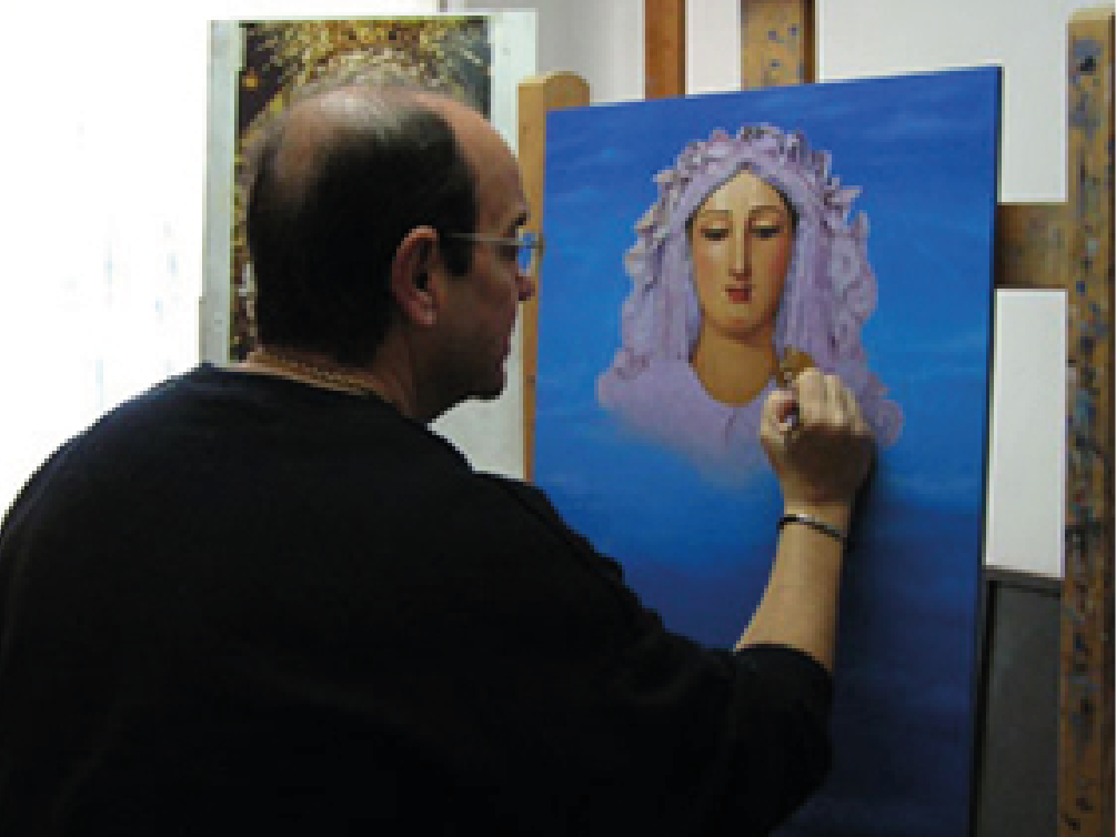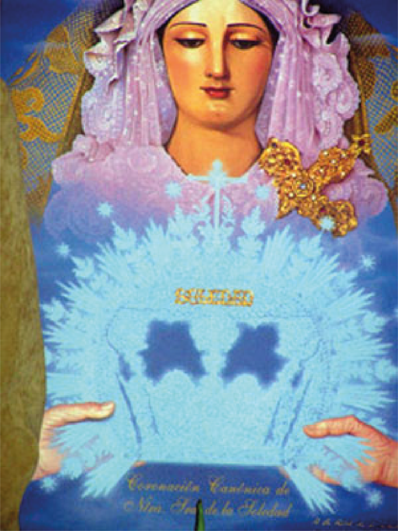 En esta se representa a la Stma. Virgen de La Soledad, que ocupa prácticamente la totalidad del cuadro, sosteniendo la Corona con la que va a ser coronada.