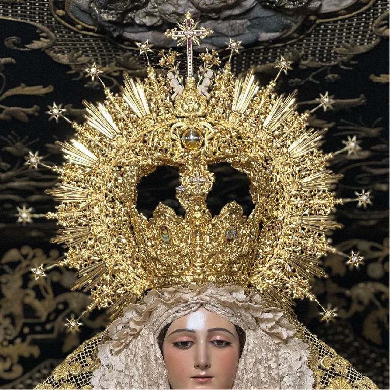 Es una corona de oro, que la Virgen luce actualmente en las salidas de Viernes Santo y Domingo de Resurrección, realizada en oro 18 a 22 quilates, abultada y cincelada.