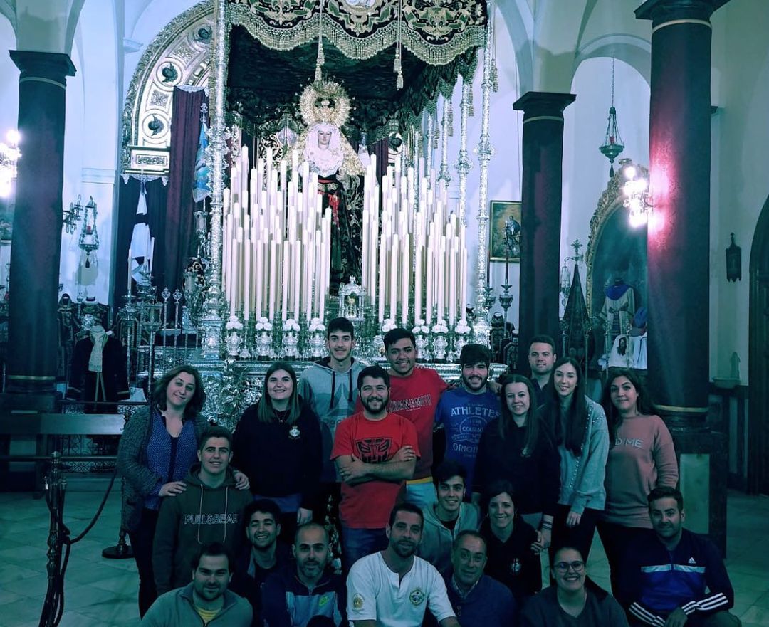 En 1975, bajo el impulso de una Junta de Gobierno comprometida con la juventud, se fundó oficialmente el Grupo Joven de la Hermandad, liderado por José Manuel Peña Pérez. Este grupo realizó actividades de formación cristiana, participando activamente en diferentes áreas de la Hermandad, como priostía y secretaría. Como recuerdo de ese primer grupo, se donó la actual Cruz de Guía que acompaña cada Viernes Santo.
