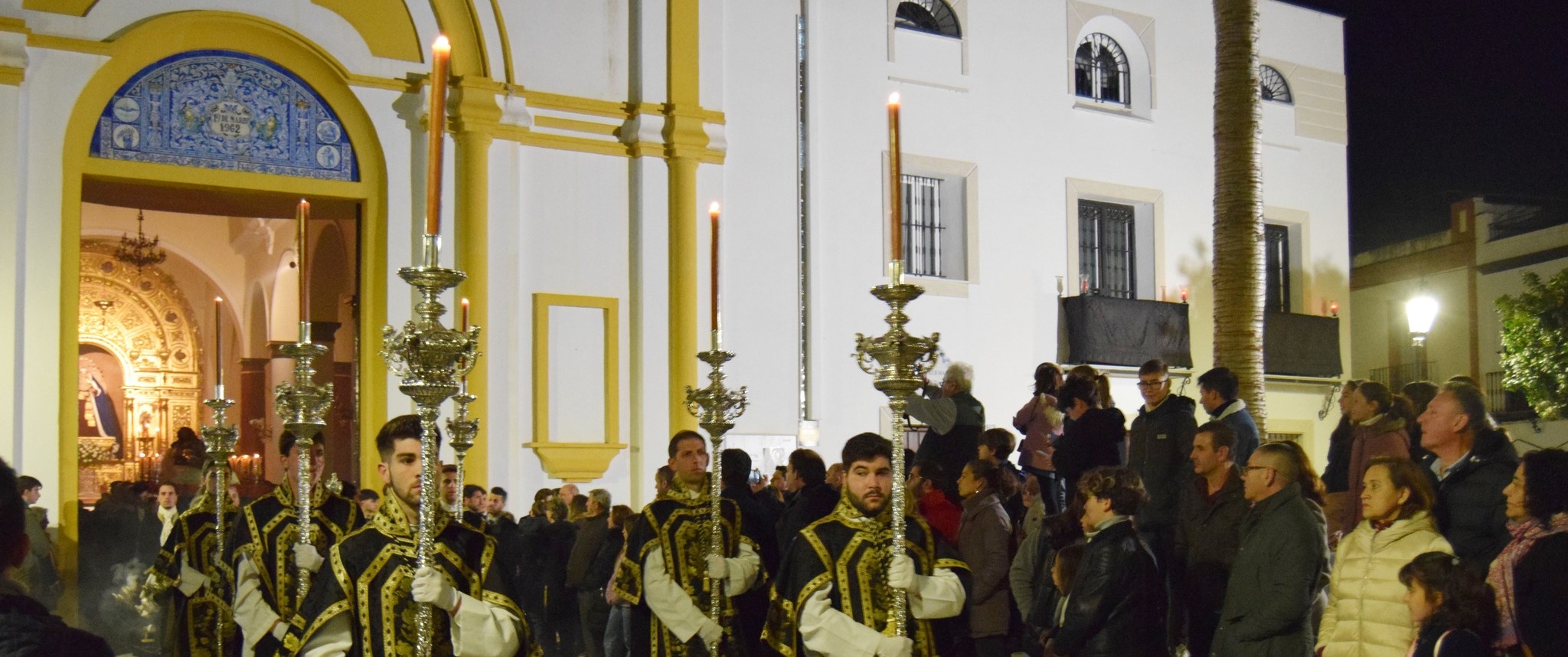Bajo el cobijo del Grupo Joven de nuestra Hermandad, y aunque no se puede precisar una fecha exacta, estimando que fue alrededor de 2002-2003, un reducido grupo de jóvenes decidió acompañar a los Sagrados Titulares en las principales funciones en su honor. Esto marcó el inicio del primer Grupo de Hermanos Acólitos en nuestra Hermandad, quienes debutaron en la Semana Santa de 2003 acompañando con ciriales, pértigas, incensarios y otros elementos litúrgicos al Santísimo Cristo Yacente, Cristo Resucitado y Nuestra Señora de la Soledad.